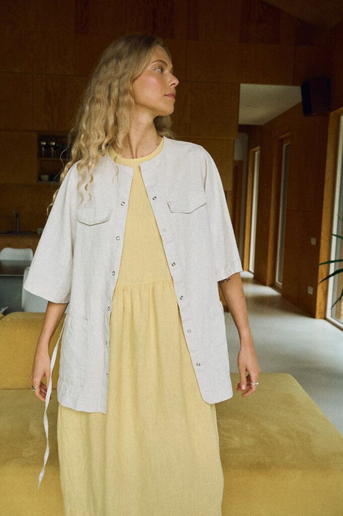Introducing the Pippa overshirt — made from 100% heavy linen or cotton and linen blend fabrics. It gives you wide sleeves, 4 front patch pockets, and a matching belt. It’s light yet structured — ideal for layering over your everyday outfits. The mid-length cut adds coverage without bulk, a great addition to your women’s linen clothing for fall.