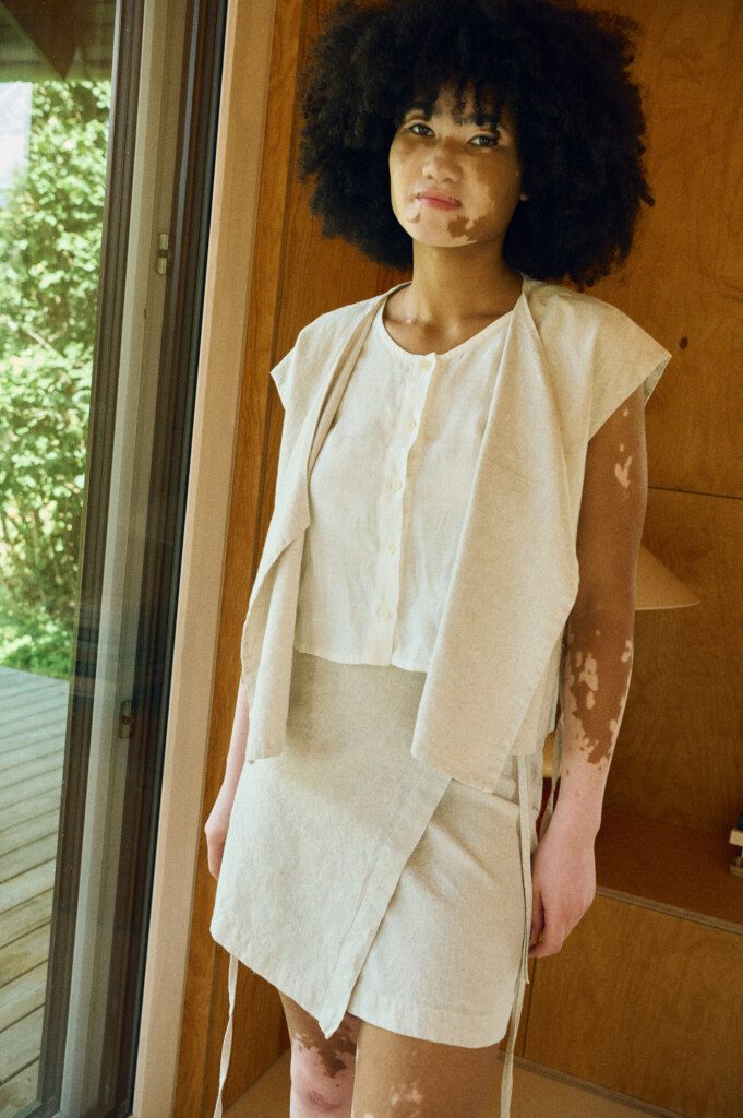 For in-between weather, the new Tyra cotton-linen blend vest delivers structure and layering versatility. We used a double-layered fabric to ensure it holds its shape all day while remaining breathable. Tie it at the waist or wear it open for different looks.