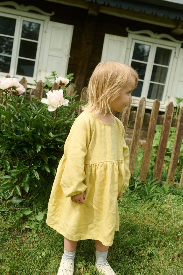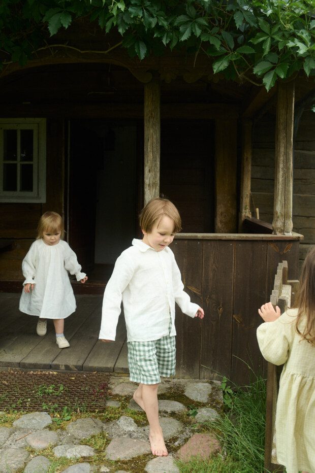 A classic gingham linen dress for girls, crafted from soft washed linen and designed for all-day comfort. This mid-length dress features long sleeves, a gently gathered waist, and a relaxed silhouette that allows freedom to move and play. It’s an ideal piece for everyday wear – from backyard adventures to family gatherings.