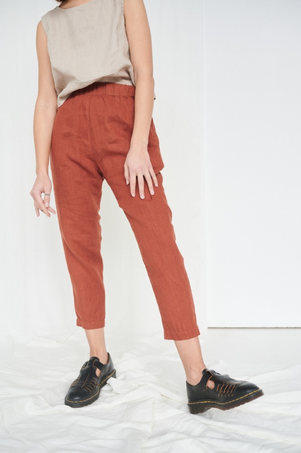 Linen is a delicate fabric. With every wear, it gets looser and softer. If you choose a linen garment in which you sit a lot, it is possible that the part on which you sit gets thinner over time. Perspiration also affects the fabric, so it is important to keep the garment clean.