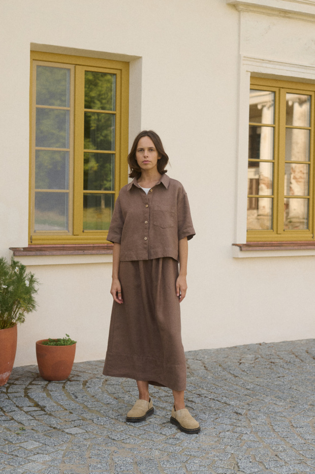 The Sami skirt is the short version of Heidi skirt, and it’s crafted from a heavy linen fabric for a long-lasting, stylish look. This mini skirt features snap button closures and an elastic waistband at the back for maximum comfort. It also has two handy front pockets.