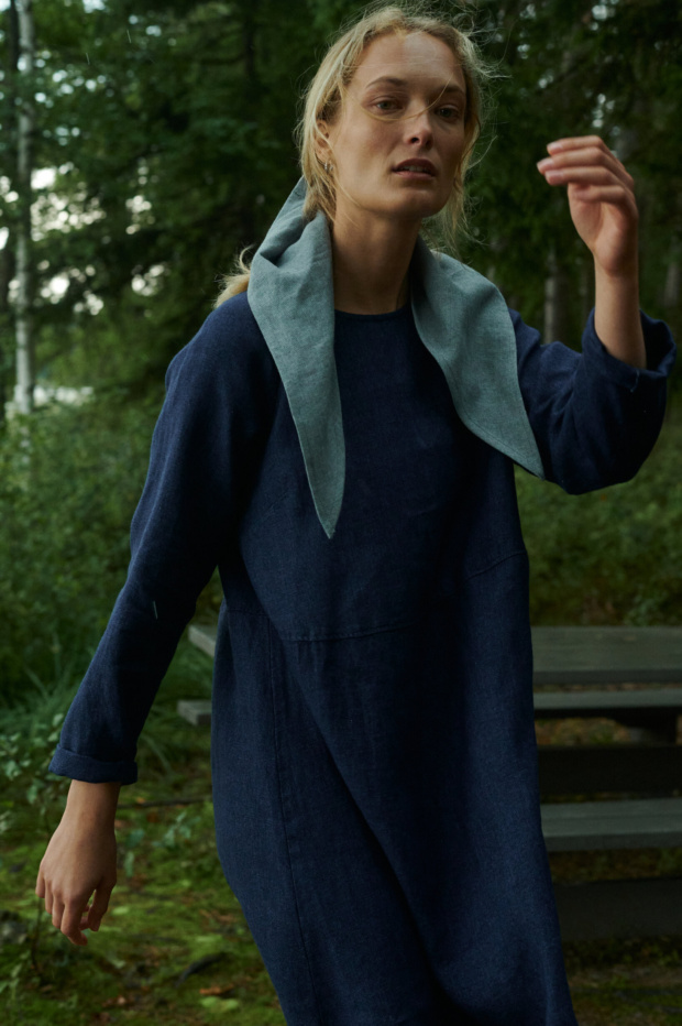 I love the ruffle look of this dress and the fabric. During colder seasons I pair it with a thin merino polo underneath or a loose merino sweater on top of it. Can't wait to wear it still this winter. Also I like that it's sleevless so I can also enjoy it while cooling down. Lovely green colour and the length is just perfect.