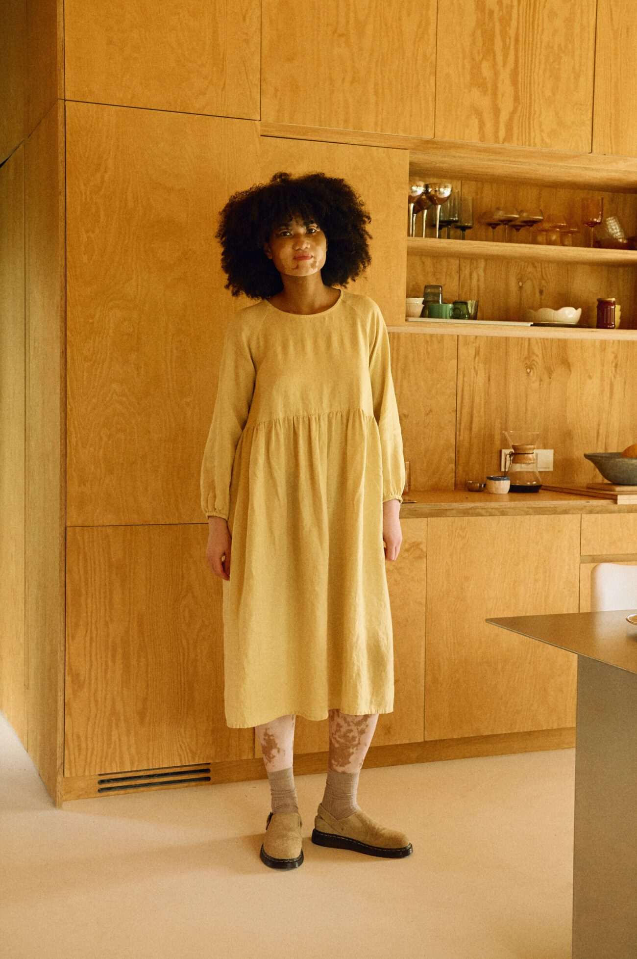 An oversized maxi linen dress named Margo. This universal smock dress is simple yet stylish. High-waist bodice and full-length skirt makes this dress flattering to most. Raglan sleeves with gathered cuffs and two side pockets to complete a polished look. Made entirely out of pure linen, this pregnancy-friendly dress in A-line silhouette is a true fall / winter hit.
