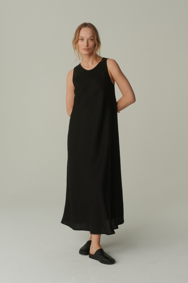 Enjoy your go-to linen dress for summer. Figure-hugging and flattering A-line shape, maxi length, and round neckline. For a sleek and elegant effect, we tactically made Alba linen dress in bias-cut. This design allows the dress to fall in gentle and graceful pleats. Made from 100% natural, durable, and breathable linen.
