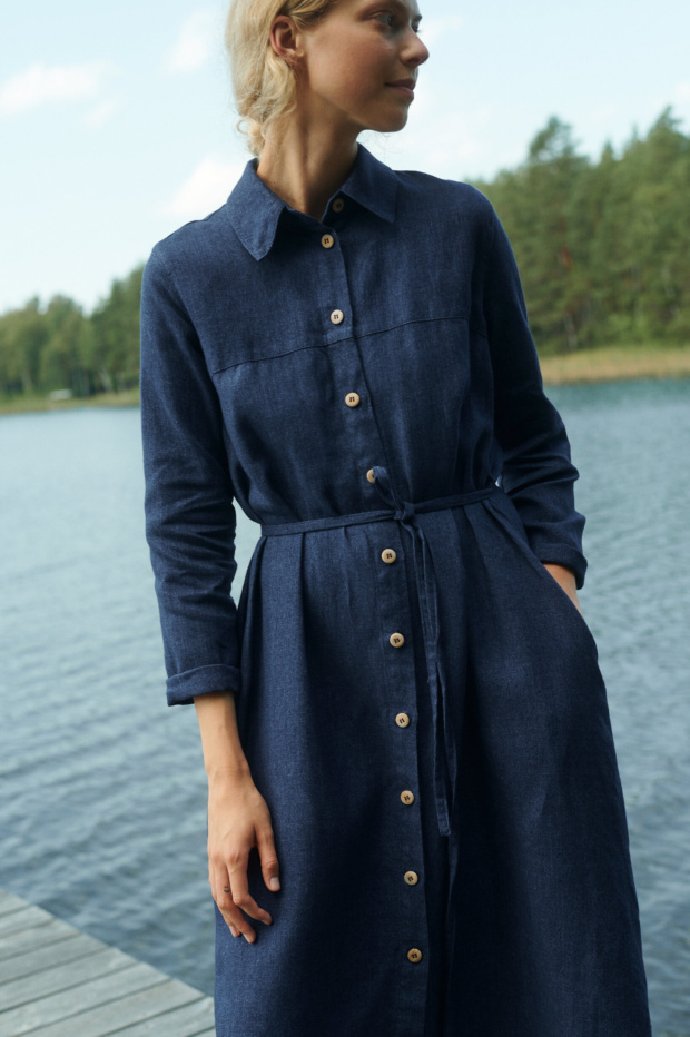 I bought the dress in brown to be my graduation dress. I can be dressed up and down easily. The fabric feels gorgeus and good guality, it's a bit stiff and rough in the beginning, but that't just how linen works. And best of all, it has POCKETS. Absolutely love the dress and wish I'd be able to buy it in the green colour.