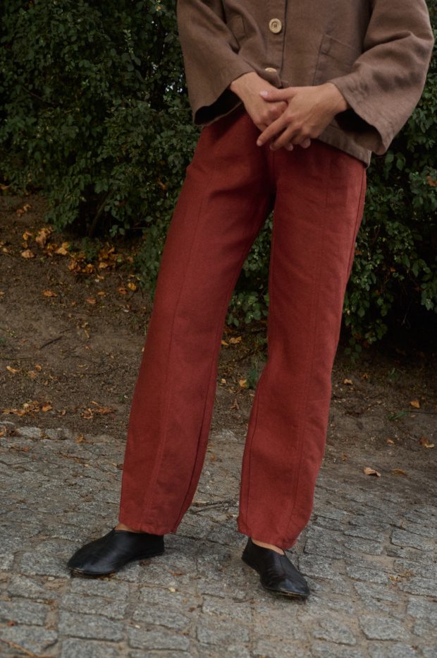 Love the trousers. I got them in heavy linen first and the cut is perfect, so I went for a second pair in waffle fabric. Feels wonderful and looks great in pair with matching Vika shirt.