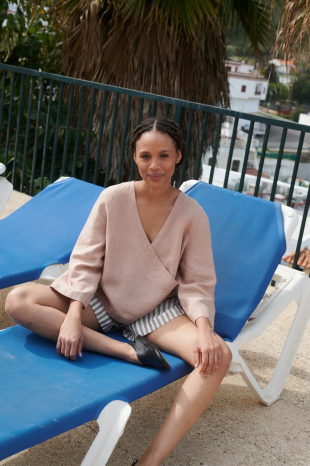 For those who love wrap tops, we introduce Georgia top. Handmade with dropped shoulders and short sleeves, and an all-time classic V-neckline. Fabric at the front is to be wrapped up with strings on the side that give the top a nice touch and a comfy fit. Soft and breathable linen top to enjoy the summer breeze.