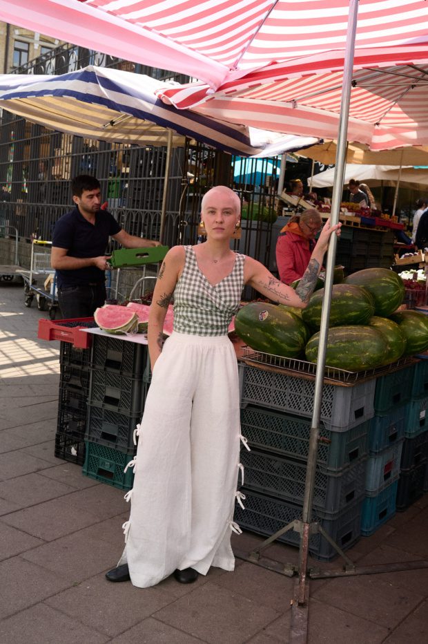 I love everythign about this top and haven’t taken it off since I’ve gotten it. The drape of the linen is beautiful, and it has effortless appeal. I had the sleeves shortened slightly bcs i am part T-Rex, and it was a good decision for me, as they are still long to bring the drama. Drama and effortlessness? What’s not to love.
