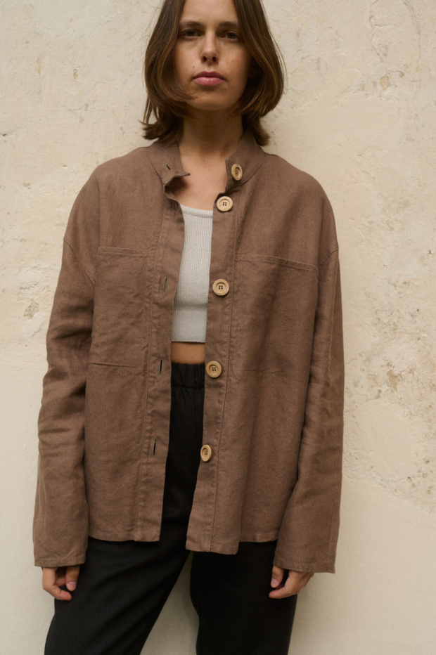 Linen is a delicate fabric. With every wear, it gets looser and softer. If you choose a linen garment in which you sit a lot, it is possible that the part on which you sit gets thinner over time. Perspiration also affects the fabric, so it is important to keep the garment clean.
